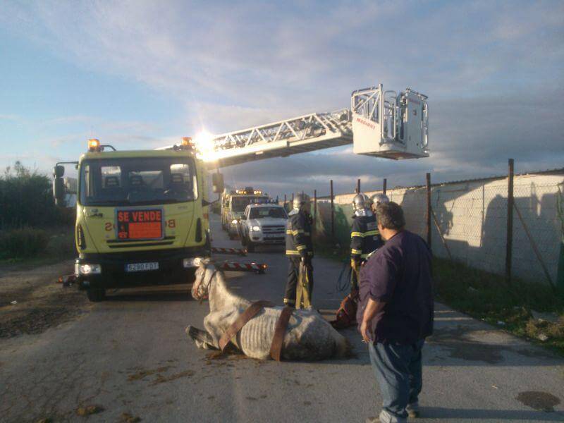 Primera had been one of Madeleine's first cases of total human ignorance. Primera was a young mare, found lying in front of the dog shelter in La Linea. She looked really bad - and obviously she felt like this, because she couldn’t get up by herself. Primera had many bruises all over her body and was very thirsty and hungry. We gave her water and hay, while waiting for the vet and the firemen.